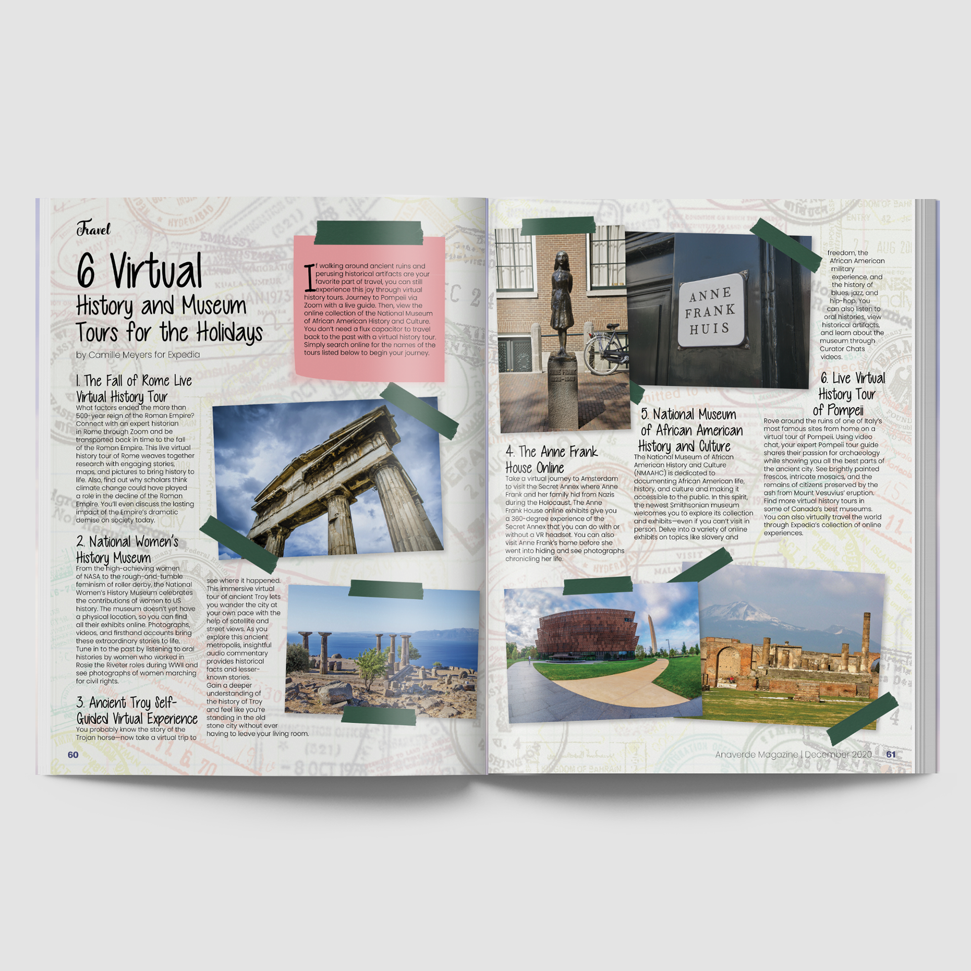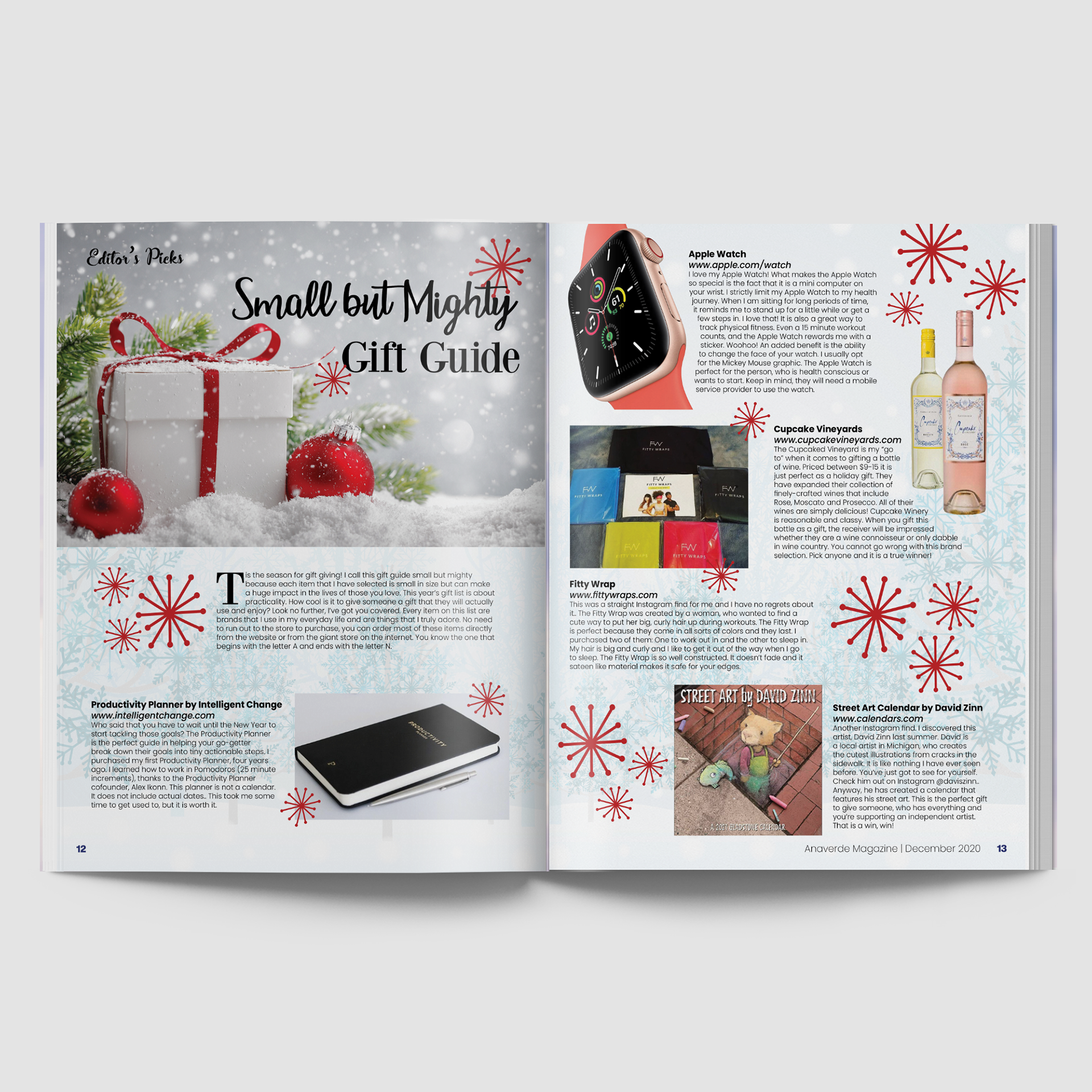 Anaverde Magazine is a community magazine in Palmdale, California. I was the lead designer for several months before leaving for the military. I designed each page in multiple issues. Highlighted on this page are some of my favorite spreads.